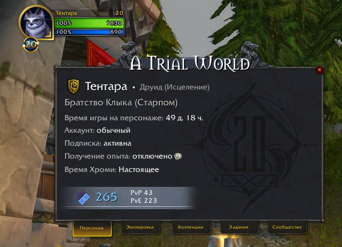 A Trial World — аддон, специально созданный для персонажей 20 уровня. Он предоставляет компактный и удобный интерфейс для отображения деталей персонажа, включая:
